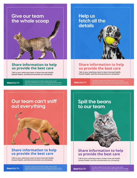 A One Health approach increases the likelihood of improving the health of people, animals, and our shared environment. By encouraging your companion animal clients to provide more relevant information about their health and environment, you are acting as a One Health champion!