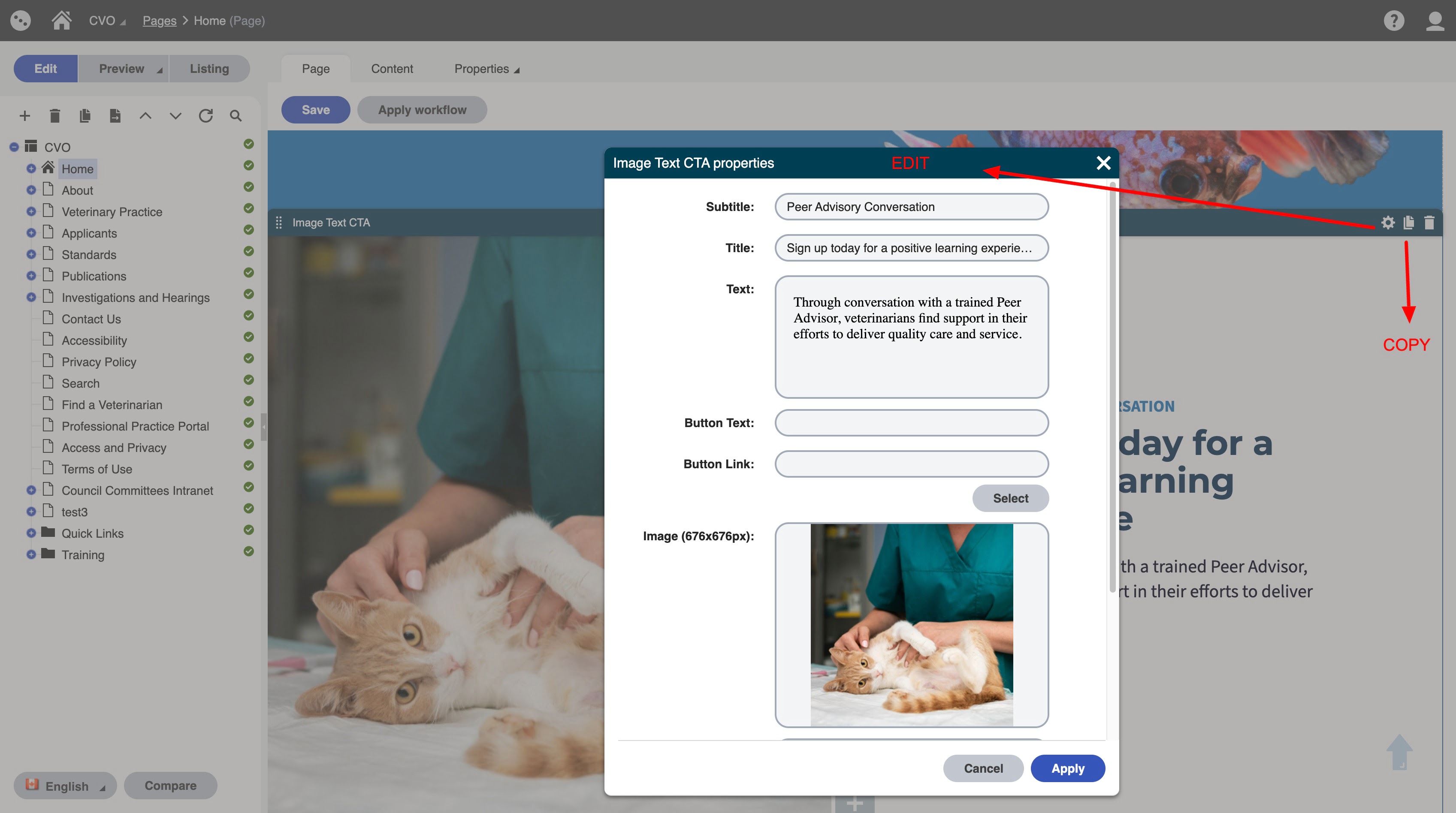 To view the widget properties click on the gear icon on the right hand side when hovering over the widget (this does not apply to rich text).
